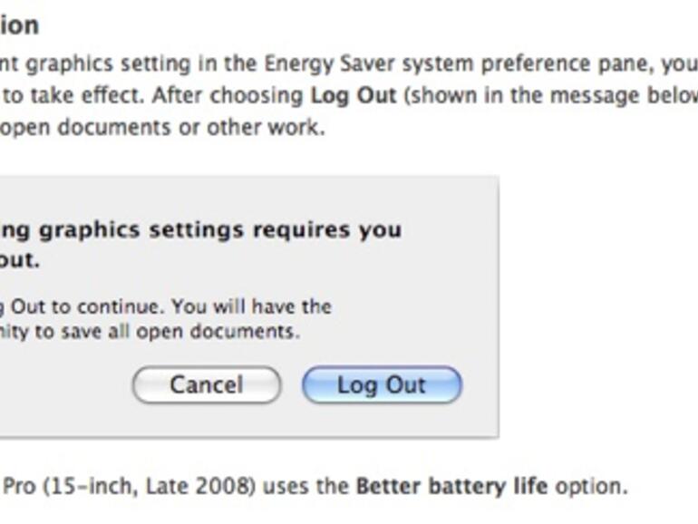 Die Tatsache, dass ein Anwender jedes mal zumindest einige Sekunden warten muss, bis er in einem veränderten Grafikmodus weiterarbeiten kann, ist natürlich nicht dramatisch, dürfte aber vielfach als störend empfunden werden. Auf der anderen Seite erscheint ein Log-Out als Voraussetzung für den Wechsel zwischen Grafikkarten durchaus plausibel, um evt. neue Treiber zu laden oder ähnliches. Engadget weist in diesem Zusammenhang allerdings darauf, dass ein ähnlicher Wechsel zwischen Grafikmodi beim mit zwei Grafikkarten ausgestatteten Vaio Z ohne Log-Out oder gar Neustart möglich sei.