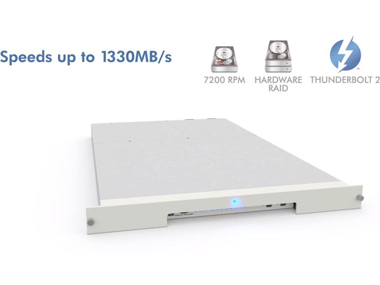 Neu im Lineup sind auch die ebenfalls mit Seagate-Festplatten, jedoch zusätzlich mit USB-3.0-Anschlüssen ausgestatteten Modelle „2big“ und „5big“, die jeweils so viele Laufwerksschächte bieten, wie die Namen vermuten lassen. Großes Lob für die Zuverlässigkeit der kompakten 5big gibt es bereits aus dem Tour-Bus des Regisseurs Jason Koenig, der 2013 die Welt-Tournee von Macklemore in über 100 TB an 4K-Video mit der Kamera RED Epic dokumentierte.