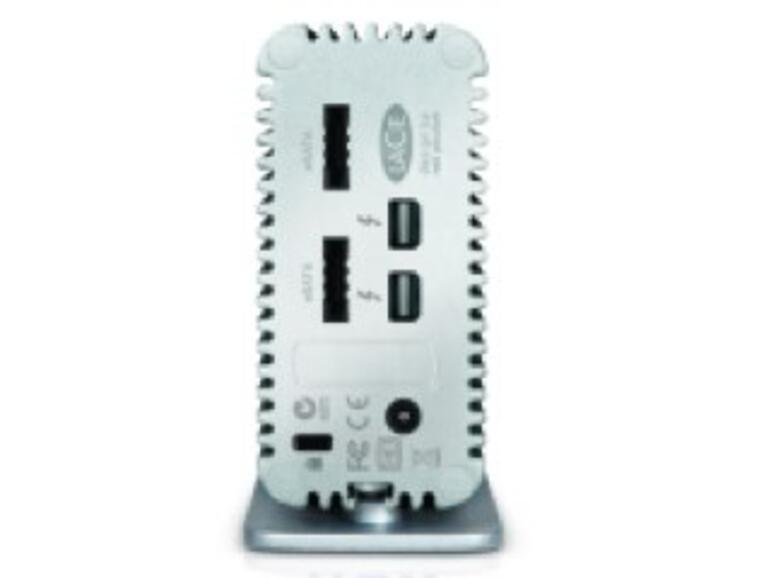 Mit der so genannten eSATA Hub Thunderbolt Series zeigt LaCie den ersten Thunderbolt-Hub mit eSATA-Schnittstelle. Mit dieser Lösung kann ein Computer mit Thunderbolt-Anschluss externe eSATA-Festplatten nutzen.