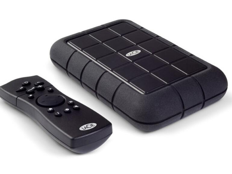 Mit der LaCinema Rugged stellte LaCie jetzt eine Festplatte dieser Art vor. Sie lässt sich an jedem Fernseher über HDMI oder eine Composite-Video-Verbindung anschließen und kann Filme, Musik und Fotos wiedergeben. Zusätzlich bietet das Gerät eine USB-Schnittstelle, mit der die Verbindung zum Mac- oder Windows-Rechner hergestellt wird. Das Laufwerk kommt mit den Audio-Formaten MP3, WMA, AC3, Ogg Vorbis und AAC zurecht. Außerdem unterstützt man die Video-Formate MPEG-1, MPEG-2 (AVI, VOB, IFO, ISO) und MPEG-4 (AVI, XviD) sowie Fotos, die als JPEG (bis zu 8 Megapixel), GIF, PNG oder BMP gespeichert wurden.