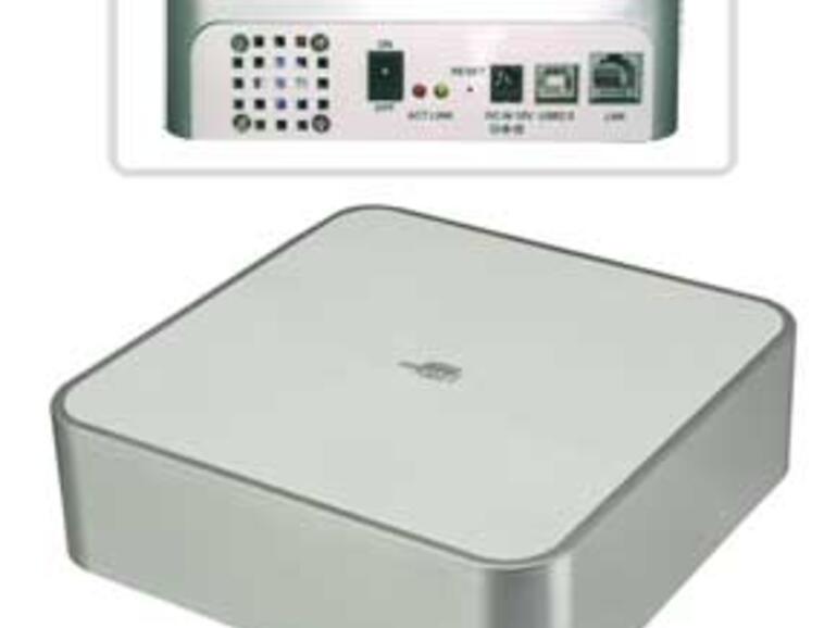 Das Besondere daran ist aber, dass nach Einbau einer Platte aus dem Gehäuse ein vollständiges NAS-Laufwerk wird - eine Netzwerkfestplatte. Ohne zusätzliche Treiber können auf dieser dann Backups der im Netz befindlichen Rechner durchgeführt, Daten zwischengelagert und ausgetauscht werden. Eingebaut ist hierzu ein 10/100 RJ-45 Ethernet-Anschluss, ein FTP-Server, über den bis zu fünf Nutzer arbeiten können und ein flüsterleiser Lüfter. Ein Passwortgeschützter Browserzugang erlaubt die Konfiguration und natürlich unterstützt das Gerät auch DHCP- und Samba-Server.