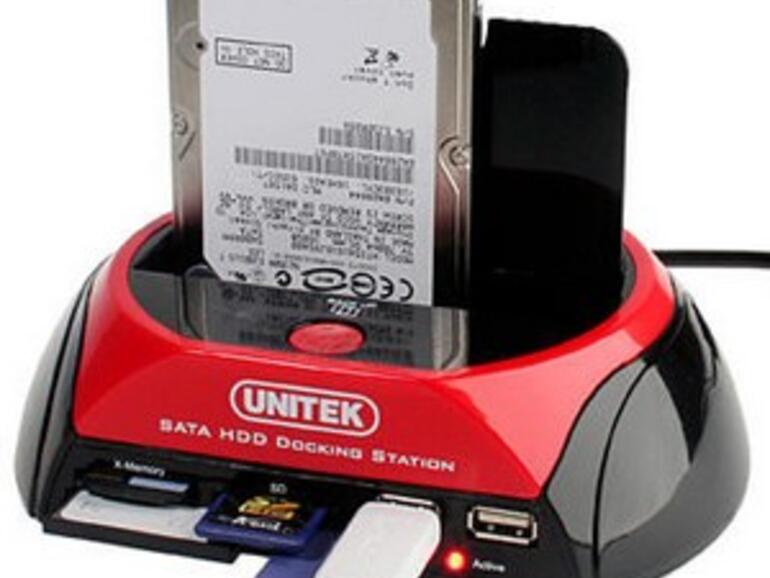 Mit dem "SATA HDD Multi-Function Dock" von Unitek lässt sich jegliche interne SATA-2,5”- oder 3,5”-Festplatte extern am Mac verwenden. Mit dem Rechner wird das Dock über USB 2.0 verbunden. Die Docking-Station integriert einen 2-port USB-Hub, einen Kartenleser und eine "One-Touch"-Backup-Funktion. Zu den unterstützten Kartentypen gehören SD, Mini SD, Micro SD u. v. m.