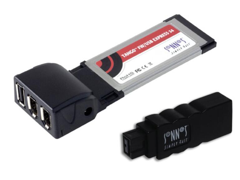 Hersteller wie Sonnet bieten einen "6-pin to 9-pin"-Adapter und eine ExpressCard/34 an, die zwei Firewire-400- und einen zusätzlichen USB-Anschluss integriert. Für die ExpressCard/34 will der Hersteller 54 Euro haben.