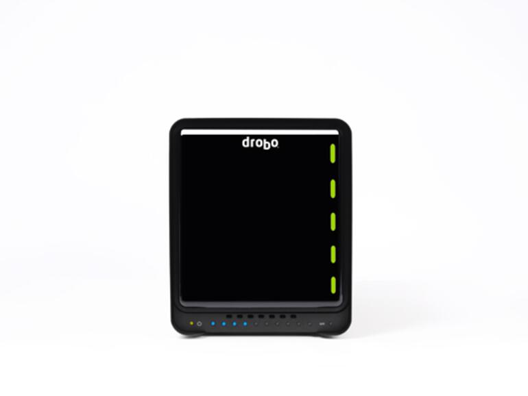 Neben dem neuen Anschluss wurde dem S auch ein fünfter Einschub für eine weitere Festplatte spendiert. Die Möglichkeit sich gegen den gleichzeitigen Ausfall von bis zu zwei Festplatten zu schützen ist bereits vom DroboPro bekannt. Diese Funktion ist nun auch beim Drobo S vorhanden und minimiert vor allem beim geplanten Austausch oder Aufrüsten einer Festplatte das Risiko des Datenverlusts. Wer von einem Drobo auf den neuen Drobo S umsteigen will, kann die Festplatten aus dem Alten in den Neuen ohne Datenverlust übernehmen.