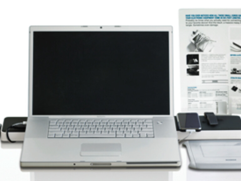 Der Platzverbrauch fällt noch weniger ins Gewicht, wenn die Spacestation als Ablagefläche für das Notebook oder kleinere Geräte (iPod) verwendet wird. Die Spacestation lässt sich in Schwarz oder Weiß und mit verschiedenen Stromsteckern (US, EU, Großbritannien) für knapp 101 US-Dollar (inklusive Versand) bestellen.