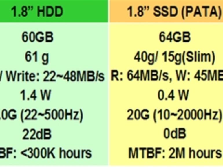 Die Disks basieren auf 8 Gbit großen, 50-nm-SLC-Flash-Chips (Single-Level-Cell) mit einem SATA-Controller. Die verkleinerte Bauweise kommt dem Stromverbrauch zu gute, denn immerhin sollen die Speichermedien mit 0,7 Watt nur halb so viel Strom verbrauchen wie vergleichbare Festplatten. Samsung liefert in diesen Tagen erste Muster aus, die Preise sind jedoch noch nicht bekannt.