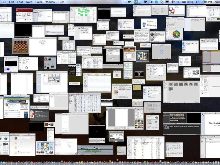 Mehr als 150 unterschiedliche Programme sollen zur gleichen Zeit auf dem Mobilrechner aktiv gewesen sein. Bei dem Gerät handele es sich um ein MacBook Pro mit 2,2 Ghz und vier GB RAM, alle Programme seien nicht nacheinander, sondern zur gleichen Zeit gestartet worden, so der stolze Eigner. Selbstverständlich wurde sofort ein Beweisfoto gemacht und bei Flickr eingestellt. Unter diesem Link lässt es sich anschauen: www.flickr.com/photos/burnflare/2387682004/.