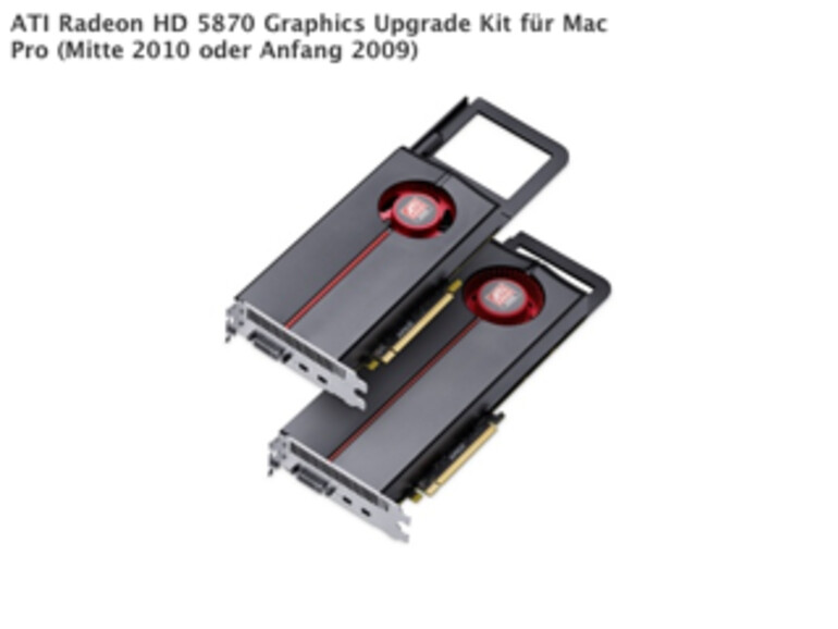 Als Sapphire HD5870 Eyefinity ist das Radeon-Modell mit 1 GB Videospeicher für Windows-Maschinen schon ab gut 300 Euro zu haben, doch dann finden sich zwei HDMI-Buchsen statt der Mini DisplayPorts am Außenblech der Grafikkarte. Außerdem läuft diese Variante eben nicht im Mac Pro*.