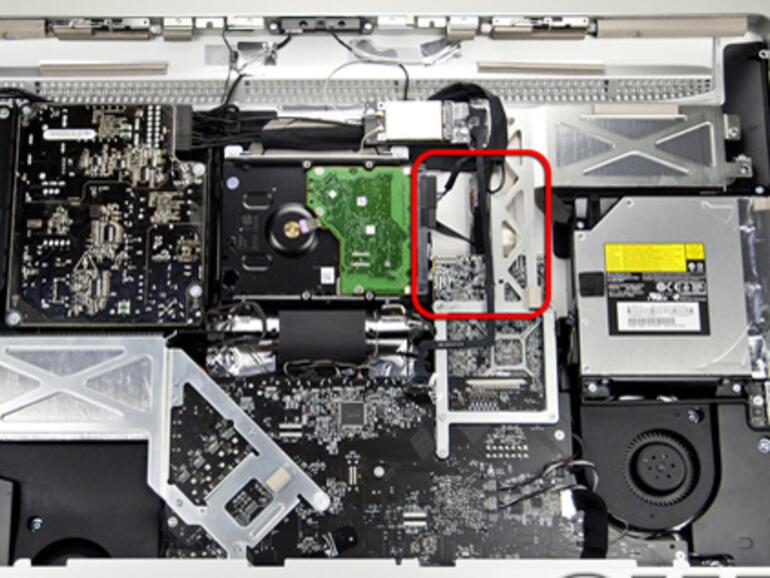 Irgendwo zwischen Rückwand und Mainboard findet sich OWC zufolge eine Lücke, die einsatzfertige Halterung setzt Apple aber nur ein, wenn auch die 540 Euro für eine SSD-Festplatte aus Cupertino ausgehändigt werden. Doch für findige Mac-User soll der Umbau keine erheblichen Schwierigkeiten bereiten. Die Verkabelung an sich stelle kein größeres Problem dar, lediglich bei der Fixierung der Komponente im Inneren des recht engen iMac sei Erfindergeist gefragt.