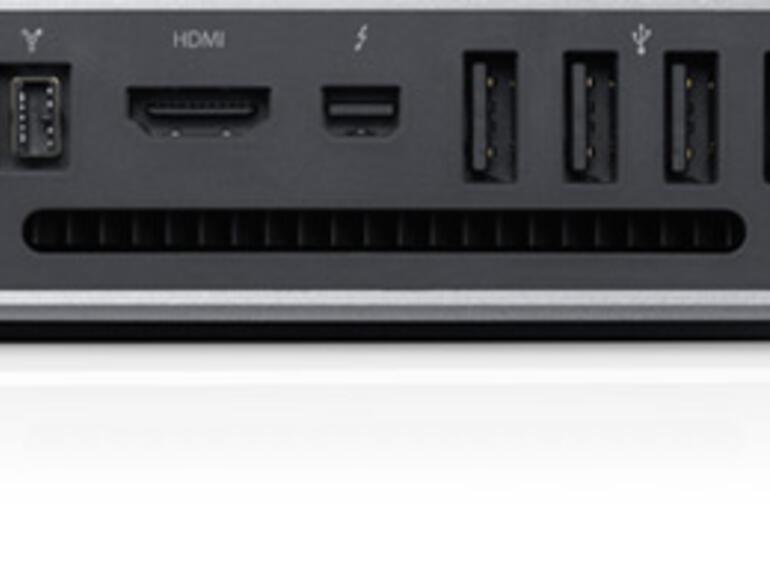 Äußerlich bleibt der Mac mini auf den ersten Blick (fast) unverändert: Fast, weil Apple nun auch in den herkömmlichen Modellen das optische Laufwerk wegrationalisiert hat. Das Einsteigermodell verfügt über eine mit 2,3 GHz getaktete Core-i5-CPU, 2 GB RAM und 500 GB Festplattenspeicher und die etwas schwachbrüstige Chipsatzgrafik Intel HD Graphics 3000, die besser ausgestattete Modellvariante kommt abweichend mit doppelt so viel RAM und einer 2,5 GHz-Core-i5-CPU daher und setzt darüber hinaus auf einen dedizierten Grafikprozessor (AMD Radeon HD 6630M).
