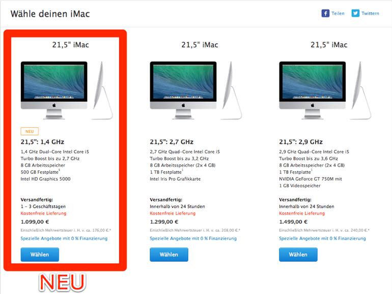 Was ändert die Erkenntnis des nicht aufzustockenden Arbeitsspeichers beim neuen Einstiegs-Modell? Gar nichts? Für den mit dem Rechner angepeilten Anwendungsbereich als Büro-, Schul- und Internet-Computer ist weder unter dem aktuellen und vorinstallierten OS X Mavericks noch dem für den Herbst angekündigten OS X Yosemite mehr Speicher gefragt. Wie bereits seit gestern vehement und ausgiebig diskutiert wird, sollten Anwender mit höheren Ansprüchen zu anderen Angeboten aus Apples Produktpalette greifen.