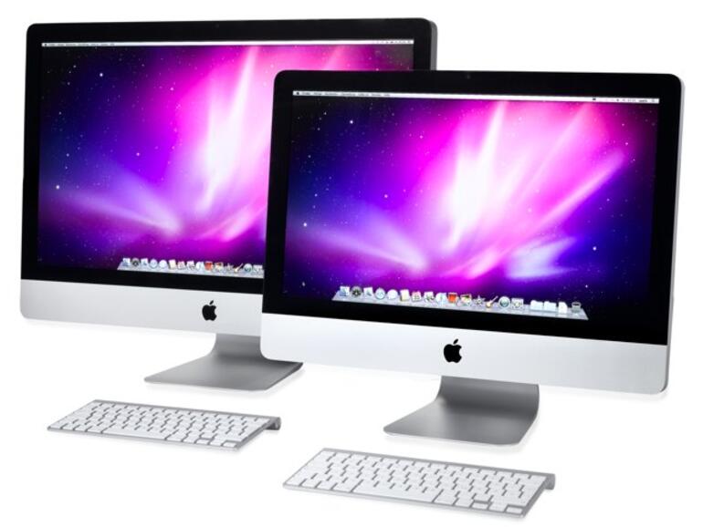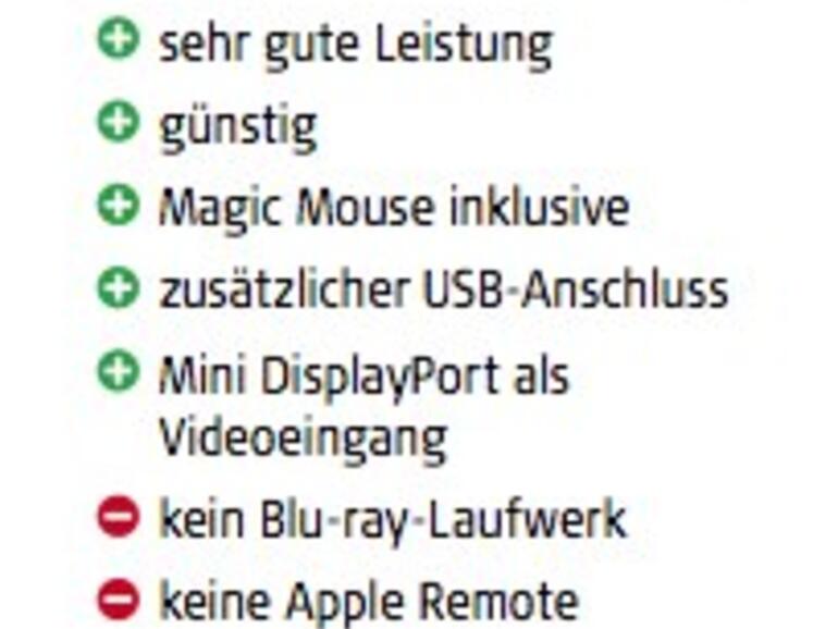 Über satte 2560 x 1440 Pixel verfügt der 27-Zoll-Mac im 16:9-Format. Auch der Bildschirm der kleineren Modelle mit 21,5" ist mit 1920 x 1080 Pixel Full-HD fähig. Für genügend Helligkeit und Kontrast sorgt die verwendete LED-Beleuchtung. Außerdem benötigt diese Technik eine kürzere Aufwärmphase und ist energieeffizienter als die klassische Beleuchtungstechnik mit Kaltkathodenröhren. Die Bildschirme unserer beiden Test-iMacs konnten ebenfalls überzeugen; sie sind hell und mit geringer Blickwinkelabhängigkeit. Subjektiv hatte der Monitor des 21,5"-iMac im direkten Vergleich bei maximaler Helligkeit das etwas bessere Bild. Der 27-Zöller kann dank VESA-Halterung auch an der Wohnzimmerwand seinen Einsatzort finden.
