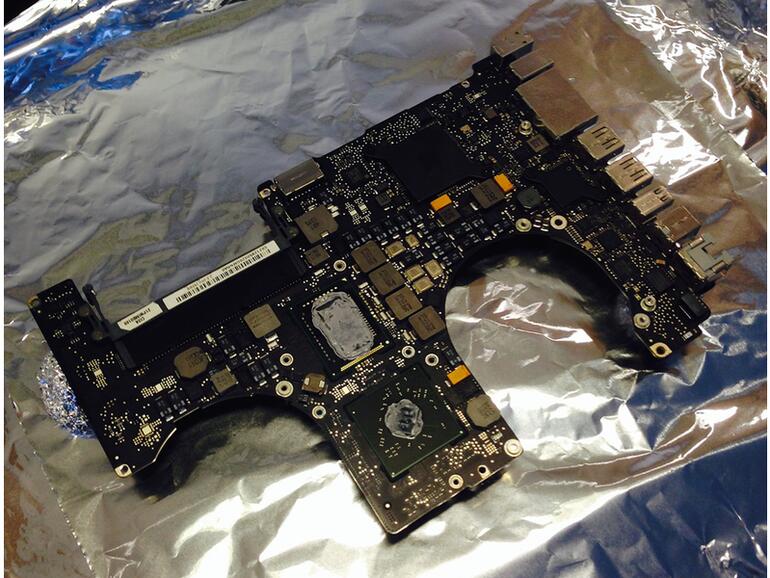 Wie ein Schweizer Bastlern nun selbst Herr über das Problem wurde, zeigt er in seinem Blog (gefunden bei iFun). Kocjančič führte das Darstellungsproblem auf einen Fehler am LogicBoard zurück. Er vermutete eine defekte Lötstelle - und so etwas lässt sich dank Tipps aus dem Internet recht unkompliziert mit ein wenig Hitze beheben. Also zerlegte er kurzerhand seinen Rechner, setzte das LogicBoard auf ein Stück Alufolie und schob die Platine für ein paar Minuten bei 170° Celsius in den Backofen. Die Celsius-Angabe klingt allerdings nach etwas zuviel des Guten...