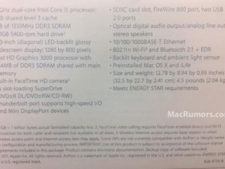 Auch der US-amerikanischen Website macrumors.com wurde inzwischen ein Foto eines MacBook-Pro-Umkartons zugespielt, auf dem die Eckdaten des 13-Zoll-Modells zu sehen sind: