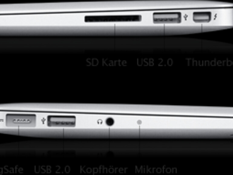 Über die Thunderbolt-Schnittstelle erlaubt auch das neue MacBook Air den Anschluss an Bildschirme mit oder Adapter auf Mini-DisplayPort. Besonders empfiehlt sich natürlich der Einsatz von Apples eigenem neuen Thunderbolt-Display*. Doch auch für kommende Massenspeicher- und Video-Lösungen ist das neue Air damit gerüstet. Als Grafikkarte setzt Apple wie bei den 13-Zoll-Modellen des MacBook Pro aus dem Februar 2011 jetzt auch hier auf die Prozessor-interne Lösung Intel HD Graphics 3000 mit 256 bis 384 MB vom DDR3-Hauptspeicher geborgtem Videospeicher.