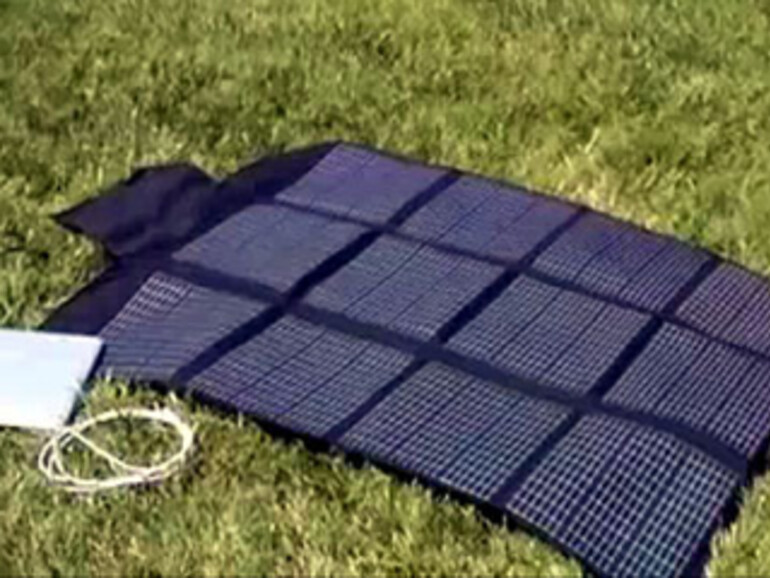 Die Solar-Plane verfügt über Ösen, so dass sie etwa am Zelt oder auf dem Boot angebunden beziehungsweise auf dem Rasen mit einem Hering fixiert werden kann. Die 27-Watt-Version entfaltet sich auf der Fläche von knapp einem Quadratmeter (rund 105 mal 76 Zentimeter), die 55-Watt-Variante braucht rund 150 mal 110 Zentimeter Platz. Das Gewicht mag auch entscheidend sein. Die kleine Solarplane wiegt rund 800 Gramm, die große belastet das Marschgepäck mit fast vier Pfund beziehungsweise 1,77 Kilogramm.