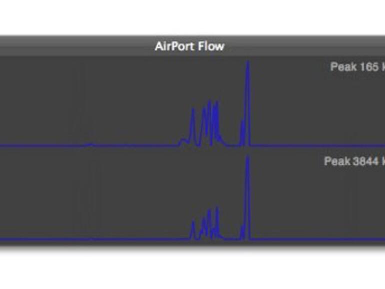 Down- und Upstream werden mittels graphischer Oberfläche sichtbar gemacht. In der neuesten Version 1.2 verrät das Programm nun außerdem die Anzahl der drahtlosen Verbindungen, die die Station gerade unterhält. Auch das betriebssysteminterne AirPort-Systemtool bietet diese Möglichkeit.