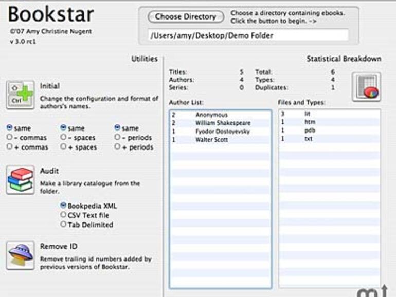 Bookstar ist eine Art virtuelles Bücherregal für eBooks, das aber viele Funktionalitäten einer Datenbank besitzt. So lassen sich Statistiken erstellen, nach Autoren oder Titeln suchen, Duplikate finden, und vieles mehr. Die Autorennamen lassen sich frei vergeben und auch bei unterschiedlichen Dateiformaten zeigt Bookstar doppelt vorhandene Titel an. Einzige Voraussetzung für diesen Komfort ist ein Mac und dass die elektronischen Bücher alle auf die gleiche Weise benannt wurden. Dann steht der Verwaltung durch Bookstar nichts mehr im Wege. Und dass seit Version 3.0 in neuem Gewand und mit noch mehr Funktionen!