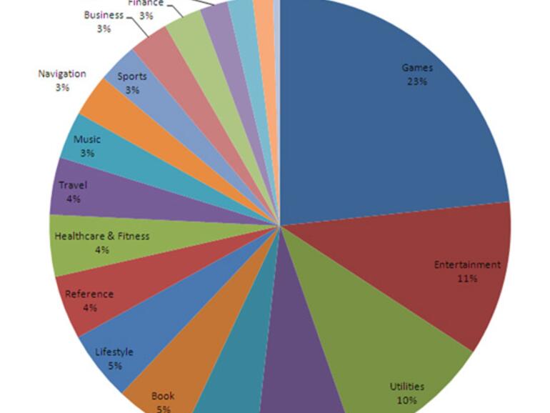 Sehr interessant sind die Statistiken zu den beliebtesten Kategorien. Demnach kaufen die Kunden meist Apps zum Spielen und zur Unterhaltung. Eher nicht so gefragt sind News, Wetterprognosen und Software für Soziale Netzwerke.