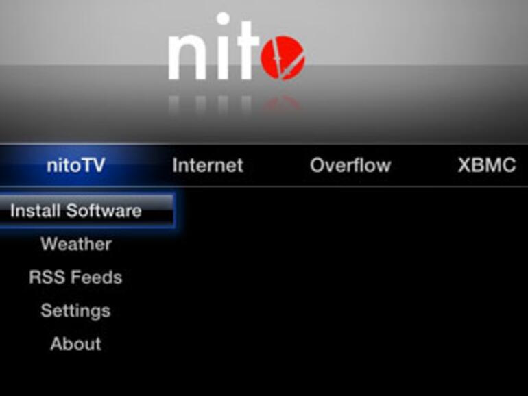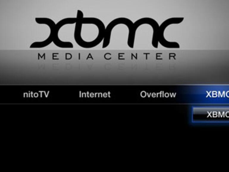 Falls der neue Menü-Eintrag XBMC nach der Installation (das Installations-Menü verlässt man über die Menü-Taste) nicht verfügbar ist, kann das Apple TV über nitoTV, Settings, Reboot AppleTV neu gestartet werden. Nach dem Neustart bietet der Menü-Eintrag nur eine Option: XBMC, um die Anwendung zu starten. Kleiner Tipp: Das ebenfalls für PC und Mac verfügbare XBMC eigenet sich auch als gute Alternative zu Apples eigener Media-Lösung Frontrow.