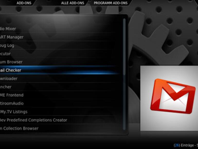 Neben Bildern, Musik und Videos ist XBMC auch in der Lage bestimmte Programme auszuführen. Diese können unter Programme und Mehr … installiert werden. Neben einem Programm um Mails aus Googles Mailservice darzustellen, können auch Apps installiert werden die wiederum andere Anwendung auf dem Mac steuern. Beispiele sind der Torrent-Client Transmission oder die Download-App jDownloader.