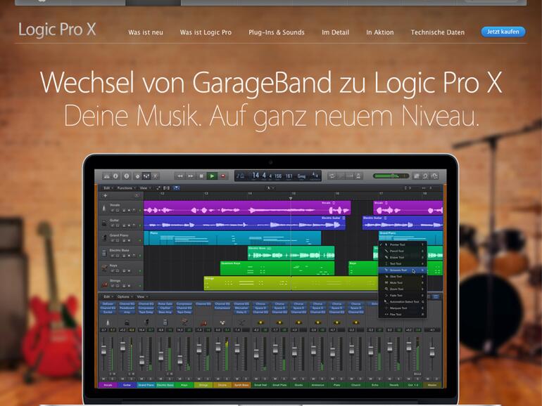 Sowohl unter OS X als auch iOS ist GarageBand längst eine feste Größe geworden. Wer sich auch nur im Geringsten für rechnergestütztes Musizieren interessiert, hat sich schon angeschaut, was die für Hobbyisten ausgelegte Anwendung zu bieten hat. Apple geht es jetzt darum, mit Nachdruck aufzuzeigen, was das Profi-Werkzeug aus gleichem Hause alles mehr zu bieten hat.