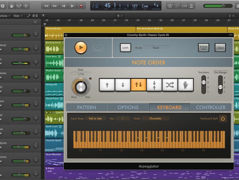 Los geht es mit der direkten Datei-Kompatibilität von Logic Pro X, die in GarageBand bereits angelegte Projekte 1:1 übernehmen und auf ihnen aufbauen lässt. Selbst die Benutzer-Oberfläche kann nach Wunsch anfangs in vertrauter Einfachheit dargestellt und später um erweiterte Funktionen bereichert werden.