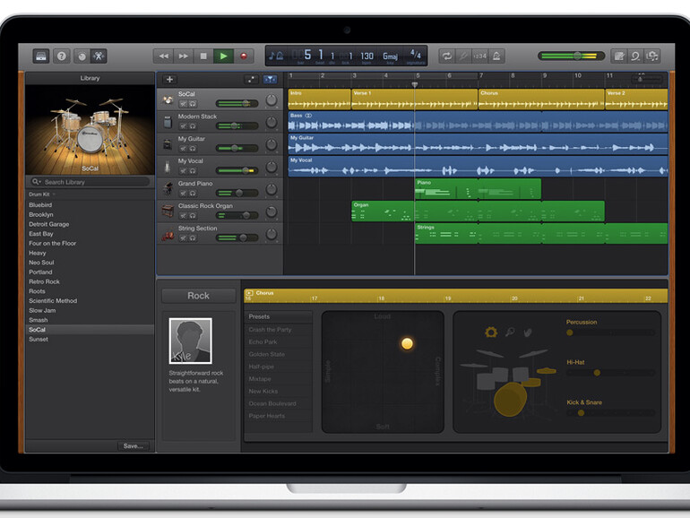 Außerdem enthält das Update mehrere Erweiterungen für die Bedienungshilfen, sowie drei neue Drummer und Drumkits aus den Genres, Rock, Songwriter und R&B. Letztere sind Teil des kostenpflichtigen Komplettpakets (4,49 Euro) für Sounds, Loops, Drummer und den Zugriff auf den GarageBand-Store für Übungen.