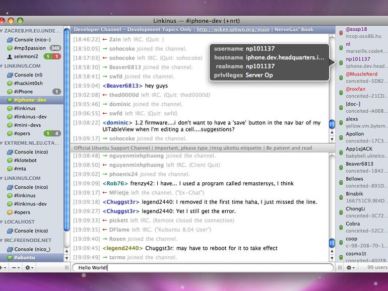 Auch die altbewährten Funktionen des IRC-Clients finden sich in der neuen Version wieder - darunter ein Automatisierungswerkzeug für alltägliche IRC-Befehle, ein eigenes Plug-In-System, Unterstützung des Benachrichtigungssystems Growl und Verbindungen über Proxys sowie SSL-Verschlüsselung.