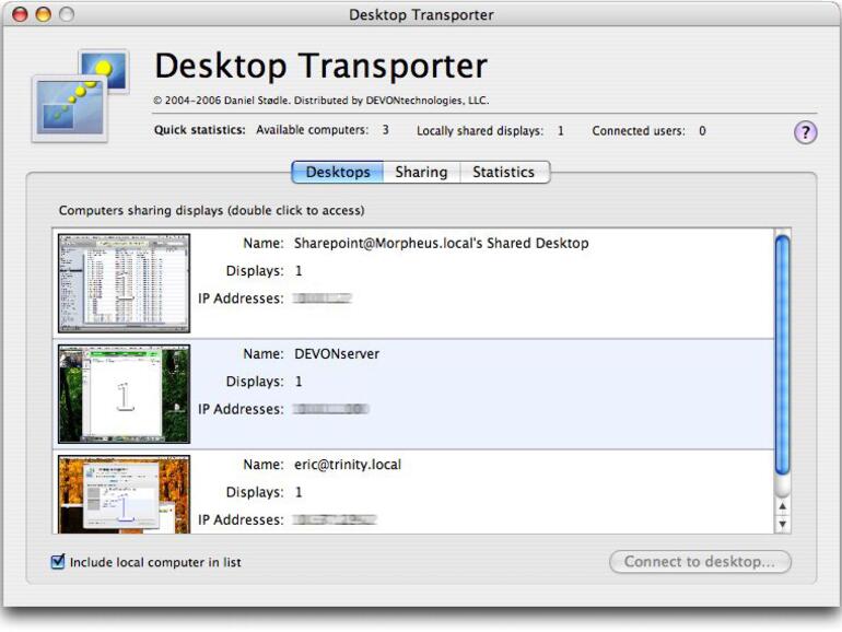 Das Besondere an dieser Software ist die Möglichkeit, den entfernten Mac mit Maus und Tastatur steuern zu können, im Gegensatz zu anderen VNC-Lösungen soll Desktop Transporter einfach zu bedienen sein und auch mit der deutschen Tastaturbelegung funktionieren.