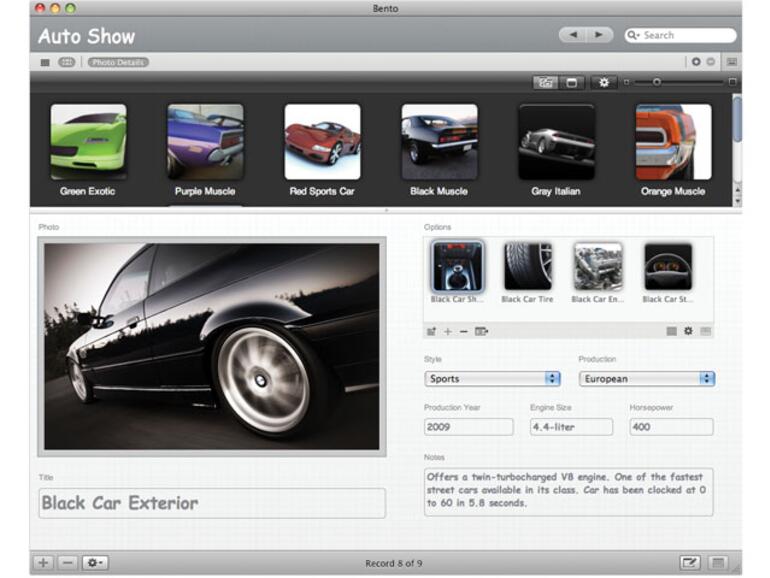 Neu hinzugekommen ist unter anderem die Integration von iPhoto, sowie die Möglichkeit, über das Netzwerk Daten mit anderen Bento-Anwendern zu tauschen. Auch die Präsentation der Einträge wurde überarbeitet - diese lehnt sich in der Optik ein wenig an die Ereignis-Ansicht in iPhoto an. Auf der Webseite des Herstellers findet sich eine Übersicht mit weiteren Verbesserungen der Datenbank-Software.