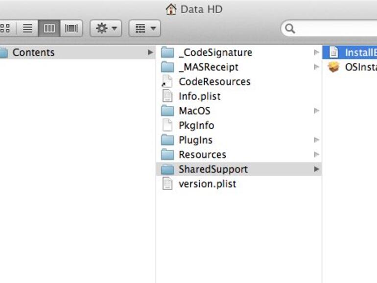 3. Die benötigte Datei namens InstallESD.dmg befindet sich unter Contents und SharedSupport.