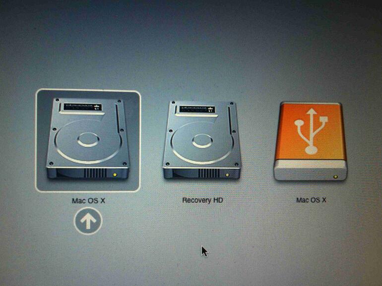5. Wählen Sie nun die DVD Mac OS X, oder aber den mit einem gelben Symbol dargestellten USB-Stick aus – der Installationsvorgang wird daraufhin starten.