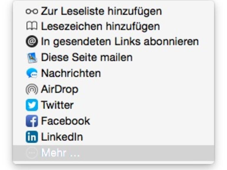 Technisch zieht die Mac-Version mit der iOS-Version gleich, was die Anzeige von Web-Adressen betrifft. Safari zeigt nur den Servernamen an. Unterverzeichnisse erscheinen erst, wenn man die Adresse einer Web-Seite über die auf dem Desktop neue Schaltfläche für Sharing weiterreichen möchte.