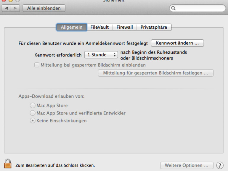 Damit der Bildschirmschoner nicht nur schön, sondern auch wirklich sicher ist, sollten Sie in den Systemeinstellungen unter Sicherheit im Reiter Allgemein die erforderliche Dauer auf Sofort einstellen, damit Unbefugte sich keinen Zugang zu Ihrem Rechner verschaffen können.