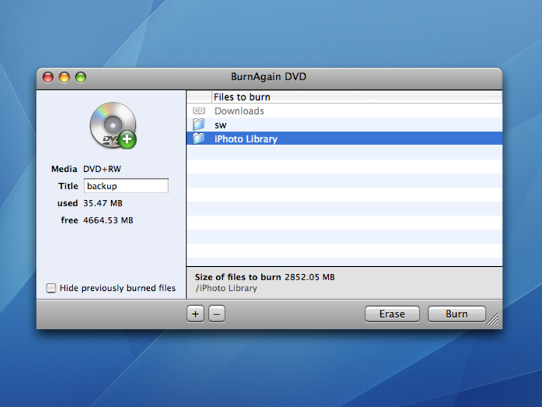 Die gebrannte Disk zeigt immer alle gebrannten Dateien in einem Volumen an und ist auch auf Windows- und Linux-Systemen lesbar. Wenn bereits gebrannte Inhalte erneut gebrannt werden, analysiert BurnAgain DVD automatisch welche Dateien sich geändert haben oder neu dazu gekommen sind und brennt nur diese. BurnAgain DVD erlaubt außerdem das verändern des Disk-Titels bei jedem Brennvorgang und erhält HFS spezifische Dateiattribute (Resource Forks) beim Brennen.