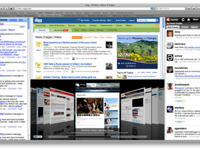 Diese Architektur erlaubt beispielsweise die Darstellung von abonnierten RSS-Feeds in einer Seitenleiste, oder einen Cover-Flow-Modus für Webseiten. Potentiell ließen sich so auch diverse Webdienste integrieren, daher die Bezeichnung als "sozialer Browser". Cruz wird von Todd Ditchendorf entwickelt, der auch an Fluid arbeitet, einem seitenspezifischen Browser. Plug-in-Beispielcode für Entwickler gibt es bereits.