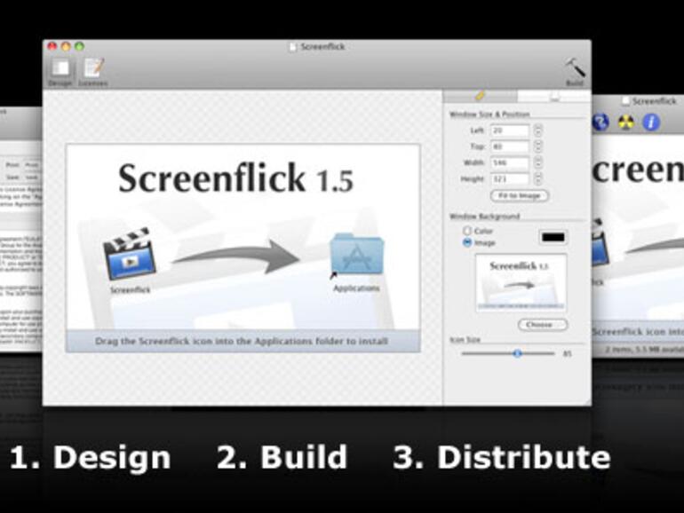 Mit der Software DMG Canvas lassen sich einfach individuell gestaltete Disk Images erstellen. Elemente können per Drag & Drop in einem Fenster abgelegt und in eine bestimmte Reihenfolge gebracht werden. Die Software erlaubt es auch, individuelle Icons und Hintergründe für das Disk Image zu erstellen. Darüber hinaus bietet DMG Canvas auch die Funktion, beim Mounten des Image Lizenzbestimmungen einzublenden.