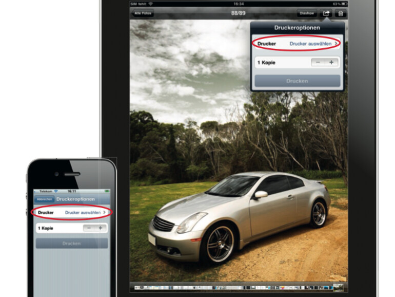 Drucken mit iPad und iPhone Schritt 2: Drucker auswählen