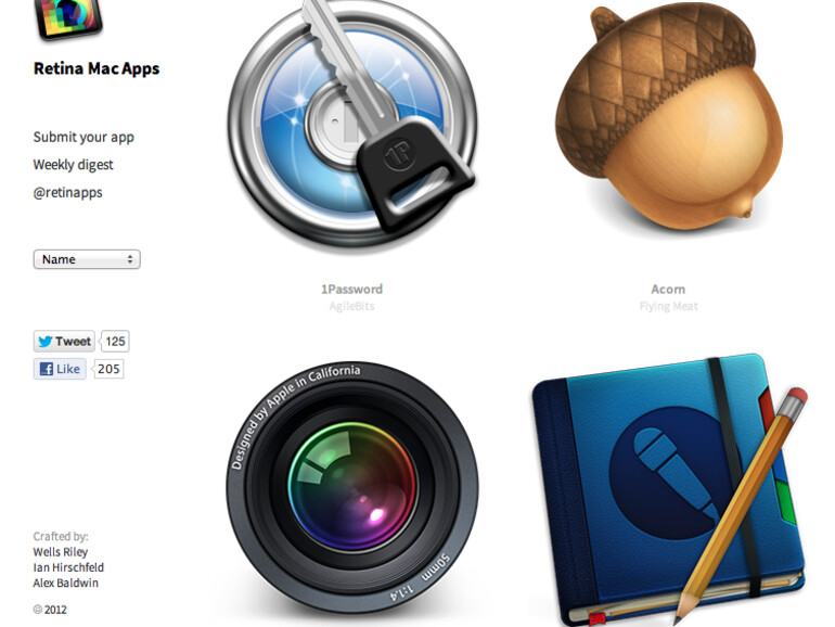 Als Apple Retina-Displays für das iPhone und später das iPad vorstellte, gab es im App Store schnell eine passende Sonder-Kategorie, die Apps hervorhob, die die neue Auflösung nutzen. Für Mac-Apps für das neue MacBook Pro mit Retina-Display blieb das bisher noch aus, dafür gibt es jetzt die Seite Retina Mac Apps von Wells Riley, Ian Hirschfeld und Alex Baldwin.