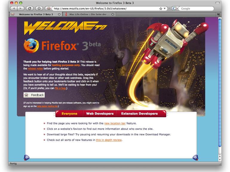 Die Benutzeroberfläche der aktuellen Firefox-Beta erinnert durchaus ein wenig an einige Apple-Programme.