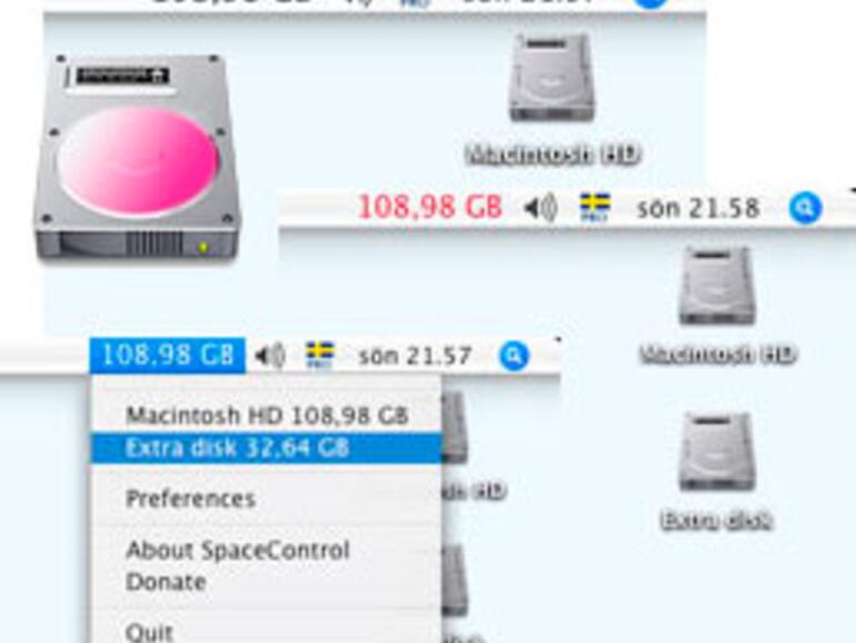 Neben der reinen Anzeige bietet SpaceControl zudem die Möglichkeit, eine Warnung auszugeben, sollte es einmal eng werden. Das dabei verwendete Limit lässt sich frei einstellen. Und wie beim Navigationsgerät ändert sich bei Überschreitung des Limits die Farbe der Anzeige von Schwarz auf Rot. Vor allem für Photoshop-Nutzer, die meist eng am Limit arbeiten, eine hilfreiche Funktion.