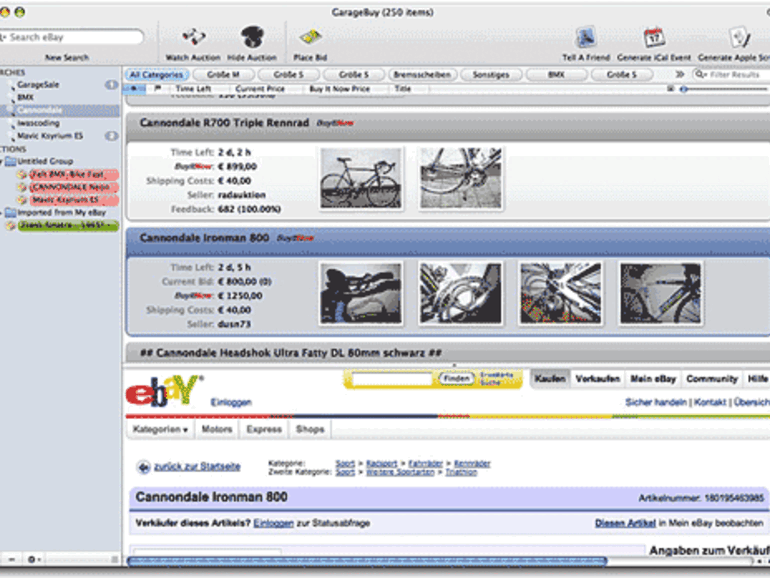 Abgesehen von diversen Leistungsoptimierungen und einigen kleineren Fehlerbehebungen ist es jetzt möglich, Auktionen per Drag&Drop zu beobachten. Dazu zieht man einfach die URL der gewünschten Ebay-Auktion direkt in das GarageBuy-Fenster. Das entsprechende Angebot wird dann automatisch der Beobachtungs-Liste hinzugefügt. Die kostenlose Applikation ist ca. 3,5 MB groß und benötigt mindestens Mac OS X 10.4.