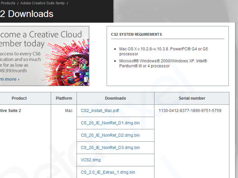 Die CS2-Downloadseite ist derzeit allerdings offline, was möglicherweise an dem Ansturm auf die Adobe-Server liegen könnte.