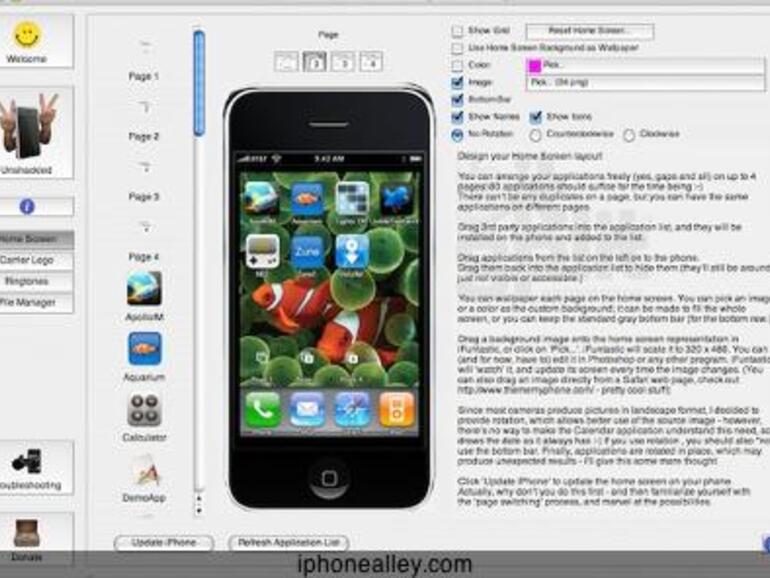 Mit ihr lassen sich viele werkseitige Einstellungen verändern, die einem mehr oder weniger gefallen. Vom Provider-Logo bis hin zur Anordnung der Icons, kann iFuntastic Modifizierungen vornehmen. Als Hilfsmittel bei der Installation eigener Klingeltöne dient das Programm ebenfalls.