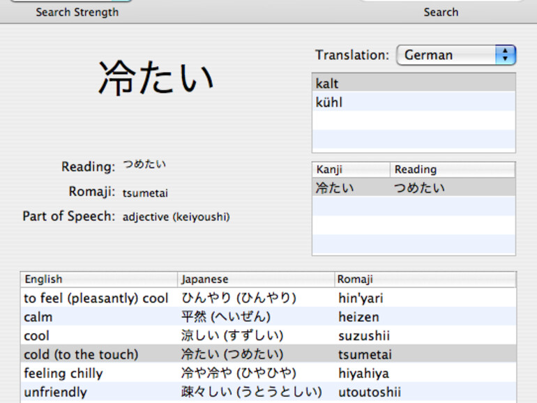 Jisho ist Shareware und kostet 15 US-Dollar. Es liefert leider keine Satzbeispiele mit, wie es "Jim Breen’s WWWJDIC" tut.