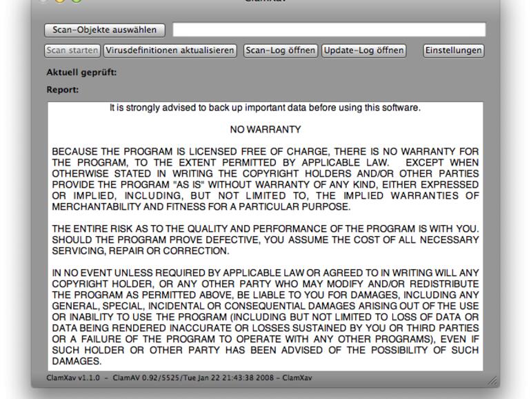 Angeboten wird dabei nicht nur eine Version für Tiger und Leopard, sondern derzeit auch noch für Mac OS X 10.3 Panther. Der Virenscanner selbst ist in ClamXav inbegriffen. Der Download beträgt ca. 20 MB.