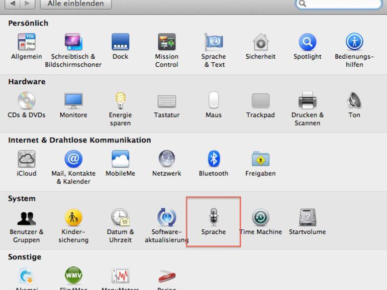 Mac OS X: Sprachsteuerung einrichten und aktivieren Schritt 1: Kontrollfeld Sprache