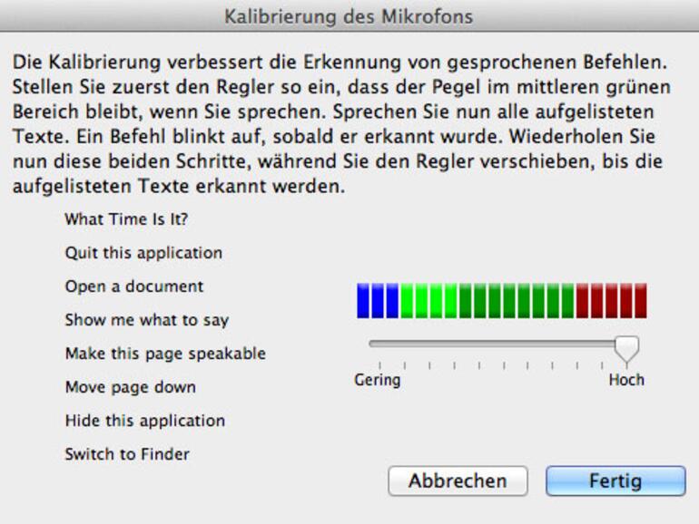 Mac OS X: Sprachsteuerung einrichten und aktivieren Schritt 3: Mikrofon kalibrieren