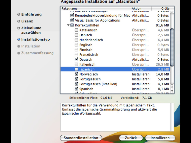 Nun deaktivieren Sie alle Korrekturhilfen beziehungsweise Sprachen, die während des Einsatzes der Anwendungen künftig nicht gebraucht werden. Die maximale Ersparnis kann 184,6 MB betragen.